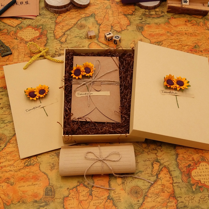 COMBO THIỆP KRAFT HOA KÈM BAO THƯ NÚT GÀI TRÁI TIM T.CRAFT HOUSE