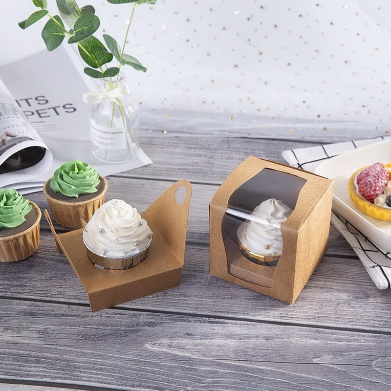 HỘP ĐỰNG BÁNH CUPCAKE HOẶC QUÀ TẶNG MẶT MICA GIẤY KRAFT PHONG CÁCH CỔ ĐIỂN T.CRAFT HOUSE